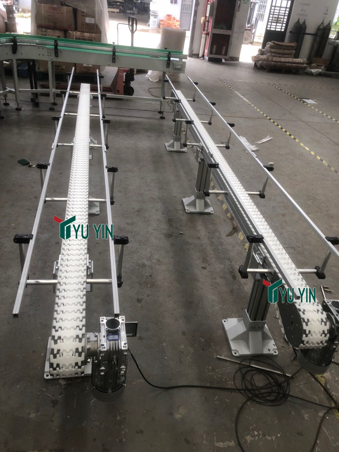 柔性鏈輸送機(jī)是現(xiàn)代化生產(chǎn)中常用的一種輸送設(shè)備,改設(shè)備大大降低了勞動(dòng)強(qiáng)度和提高了生產(chǎn)的效率。其中柔性鏈輸送機(jī)的使用范圍很廣,柔性鏈輸送機(jī)轉(zhuǎn)彎裝置可以實(shí)現(xiàn)螺旋轉(zhuǎn)彎、水平轉(zhuǎn)彎、上下轉(zhuǎn)彎、組合轉(zhuǎn)彎、上下變坡運(yùn)行。