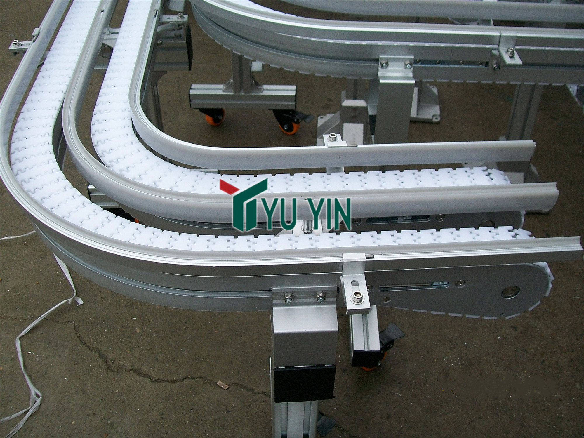 柔性鏈輸送機(jī)整條輸送線由高強(qiáng)度工程塑料鏈板與表面經(jīng)陽極氧化的鋁合金異型材組裝而成。柔性鏈輸送機(jī)鏈板一般為純白色,設(shè)備運(yùn)行無需潤滑,沒有污染,不會被腐蝕,符合GMP規(guī)范。