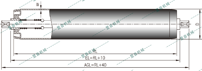 彈簧壓入式滾簡(jiǎn)通過(guò)彈性軸安裝,是最易于安裝拆卸的安裝方式。我們的尺寸圖中建議軸兩端伸出來(lái)20mm長(zhǎng),如果需要其他長(zhǎng)度需要咨詢(xún)我司。