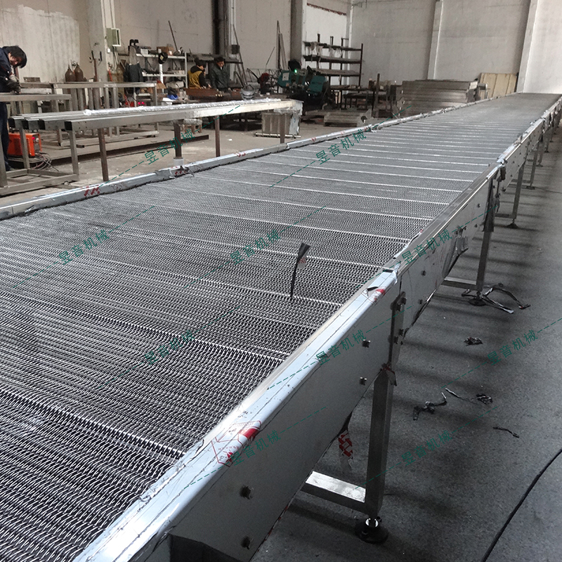 2、輸送帶材質(zhì)為不銹鋼或者碳鋼,其具有強(qiáng)度高,伸縮性小,不易變形,易保養(yǎng);且衛(wèi)生,耐腐蝕,耐高溫或惡劣環(huán)境性強(qiáng);
