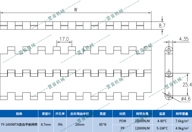 1400WTA 寬齒平板網(wǎng)帶