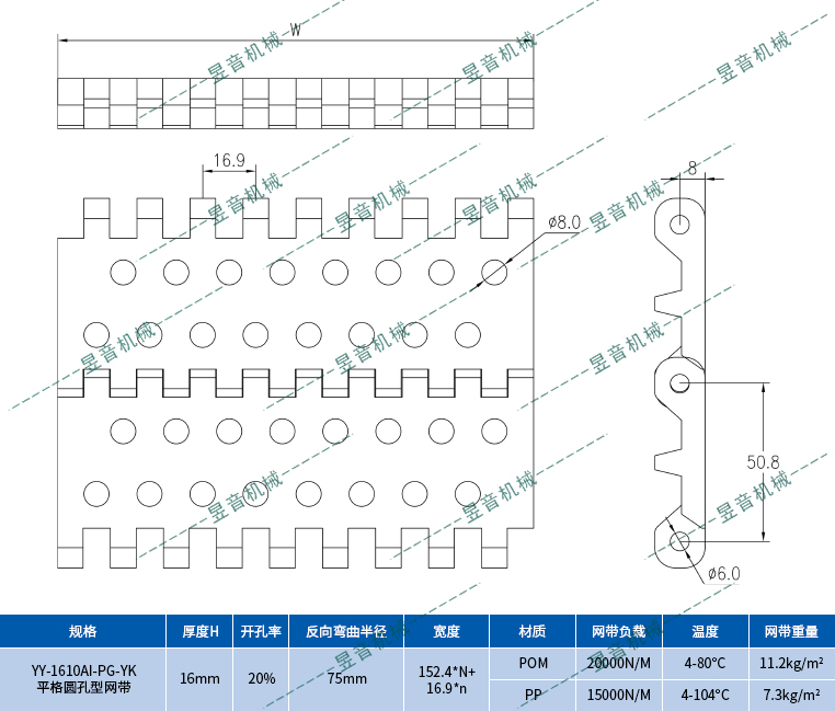1610AI-PG-YK平格圓孔型網(wǎng)帶(反面一條筋型)